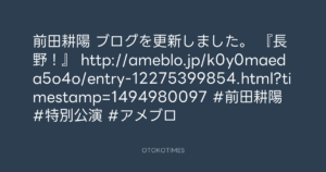 前田耕陽 ブログを更新しました。 『長野!』