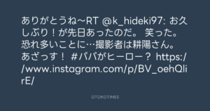 ありがとうね〜RT @k_hideki97: お久しぶり!が先日あったのだ。