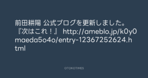 Koyo Maeda @koyomaeda – 11:17・2018年4月10日 2018 4/10 前田耕陽 2018-04-10 前田耕陽 公式ブログを更新しました。 『次はこれ!』 http://ameblo.jp/k0y0maeda5o4o/entry-12367252624.html Source:https://x.com/koyomaeda/status/983529317865943040 text X Post 前田耕陽 前田耕陽 この記事が気に入ったら フォローしてね! Follow @OtokoTimes1988 よかったらシェアしてね! URLをコピーしました! 寺岡呼人 @yohito_teraoka - 19:33・2018年4月9日 Koyo Maeda @koyomaeda - 10:02・2018年4月11日 関連記事 Artist 前田耕陽 1968.08.16