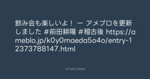 Koyo Maeda @koyomaeda – 7:22・2018年5月6日 2018 5/06 前田耕陽 2018-05-06 飲み会も楽しいよ! ー アメブロを更新しました #前田耕陽 #稽古後 https://ameblo.jp/k0y0maeda5o4o/entry-12373788147.html Source:https://x.com/koyomaeda/status/992892212160610304 text X Post 前田耕陽 前田耕陽 この記事が気に入ったら フォローしてね! Follow @OtokoTimes1988 よかったらシェアしてね! URLをコピーしました! Koyo Maeda @koyomaeda - 5:58・2018年5月5日 前田 耕陽 @koyo.maeda - 10:33・2018年5月6日(IG post) 関連記事 Artist 前田耕陽 1968.08.16