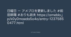 Koyo Maeda @koyomaeda – 10:32・2018年5月14日 2018 5/14 前田耕陽 2018-05-14 日曜日 ー アメブロを更新しました #前田耕陽 #おりも政夫 https://ameblo.jp/k0y0maeda5o4o/entry-12375850477.html Source:https://x.com/koyomaeda/status/995839221003796480 text X Post 前田耕陽 前田耕陽 この記事が気に入ったら フォローしてね! Follow @OtokoTimes1988 よかったらシェアしてね! URLをコピーしました! 寺岡 呼人 @yohitoteraoka - 19:22・2018年5月13日(IG post) 寺岡 呼人 @yohitoteraoka - 20:20・2018年5月14日(IG post) 関連記事 Artist 前田耕陽 1968.08.16