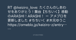 RT @keiziro_love: たくさんのしあわせをありがとう!舞台【ちちいく】感動のARASHI!ARASHI! ー アメブロを更新しました