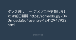 Koyo Maeda @koyomaeda – 12:11・2018年10月19日 2018 10/19 前田耕陽 2018-10-19 ダンス通し! ー アメブロを更新しました #前田耕陽 https://ameblo.jp/k0y0maeda5o4o/entry-12412947922.html Source:https://x.com/koyomaeda/status/1053121547605442560 text X Post 前田耕陽 前田耕陽 この記事が気に入ったら フォローしてね! Follow @OtokoTimes1988 よかったらシェアしてね! URLをコピーしました! Koyo Maeda @koyomaeda - 13:29・2018年10月18日 Koyo Maeda @koyomaeda - 13:16・2018年10月19日 関連記事 Artist 前田耕陽 1968.08.16