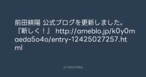 前田耕陽 公式ブログを更新しました。 『新しく!』