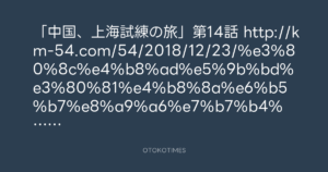 「中国、上海試練の旅」第14話 http://km-54.com/54/2018/12/23/%e3%80%8c%e4%b8%ad%e5%9b%bd%e3%80%81%e4%b8%8a%e6%b5%b7%e8%a9%a6%e7%b7%b4%e3%81%ae%e6%97%85%e3%80%8d%e7%ac%ac14%e8%a9%b1/