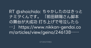 「前田耕陽さん脚本の舞台が大成功 打ち上げで号泣したら…」 https://www.nikkan-gendai.com/articles/view/geino/246138 #日刊ゲンダイDIGITAL浅野さんとひろしでしたよ!