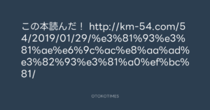この本読んだ! http://km-54.com/54/2019/01/29/%e3%81%93%e3%81%ae%e6%9c%ac%e8%aa%ad%e3%82%93%e3%81%a0%ef%bc%81/