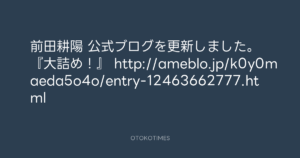 前田耕陽 公式ブログを更新しました。 『大詰め!』