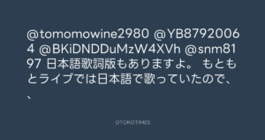 Koyo Maeda @koyomaeda – 16:33・2020年2月7日 2020 2/07 前田耕陽 2020-02-07 @tomomowine2980 @YB87920064 @BKiDNDDuMzW4XVh @snm8197 日本語歌詞版もありますよ。 もともとライブでは日本語で歌っていたので、、 Source:https://x.com/koyomaeda/status/1225683969292681218 text X Post 前田耕陽 前田耕陽 この記事が気に入ったら フォローしてね! Follow @OtokoTimes1988 よかったらシェアしてね! URLをコピーしました! Koyo Maeda @koyomaeda - 15:19・2020年2月7日 寺岡呼人 @yohito_teraoka - 19:29・2020年2月7日 関連記事 Artist 前田耕陽 1968.08.16