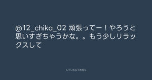 Koyo Maeda @koyomaeda – 20:29・2020年2月11日 2020 2/11 前田耕陽 2020-02-11 @12_chika_02 頑張ってー!やろうと思いすぎちゃうかな。。もう少しリラックスして Source:https://x.com/koyomaeda/status/1227192928973410304 text X Post 前田耕陽 前田耕陽 この記事が気に入ったら フォローしてね! Follow @OtokoTimes1988 よかったらシェアしてね! URLをコピーしました! Koyo Maeda @koyomaeda - 19:50・2020年2月11日 寺岡呼人 @yohito_teraoka - 21:15・2020年2月12日 関連記事 Artist 前田耕陽 1968.08.16