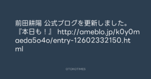 前田耕陽 公式ブログを更新しました。 『本日も!』