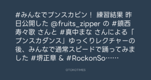 昨日公開した @fruits_zipper の #鎮西寿々歌 さんと #真中まな さんによる「プンスカダンス」ゆっくりレクチャーの後、みんなで通常スピードで踊ってみました🎶