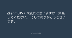 Koyo Maeda @koyomaeda – 21:32・2021年4月24日 2021 4/24 前田耕陽 2021-04-24 @snm8197 大変だと思いますが、頑張ってください。 そしてありがとうございます。 Source:https://x.com/koyomaeda/status/1385934760267059201 text X Post 前田耕陽 前田耕陽 この記事が気に入ったら フォローしてね! Follow @OtokoTimes1988 よかったらシェアしてね! URLをコピーしました! Koyo Maeda @koyomaeda - 16:28・2021年4月24日 Koyo Maeda @koyomaeda - 18:00・2021年4月26日 関連記事 Artist 前田耕陽 1968.08.16