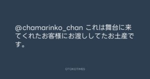 Koyo Maeda @koyomaeda – 11:18・2021年6月15日 2021 6/15 前田耕陽 2021-06-15 @chamarinko_chan これは舞台に来てくれたお客様にお渡ししてたお土産です。 Source:https://x.com/koyomaeda/status/1404624205157597191 text X Post 前田耕陽 前田耕陽 この記事が気に入ったら フォローしてね! Follow @OtokoTimes1988 よかったらシェアしてね! URLをコピーしました! Koyo Maeda @koyomaeda - 10:56・2021年6月15日 東京レコード @tokyo_records - 17:12・2021年6月15日 関連記事 Artist 前田耕陽 1968.08.16