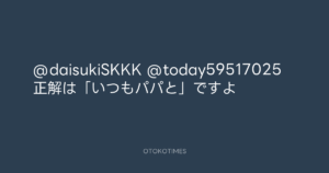 Koyo Maeda @koyomaeda – 16:39・2021年6月20日 2021 6/20 前田耕陽 2021-06-20 @daisukiSKKK @today59517025 正解は「いつもパパと」ですよ Source:https://x.com/koyomaeda/status/1406517010373124098 text X Post 前田耕陽 前田耕陽 この記事が気に入ったら フォローしてね! Follow @OtokoTimes1988 よかったらシェアしてね! URLをコピーしました! 谷中敦 @a_yanaka - 午前0:01 · 2021年6月20日 Koyo Maeda @koyomaeda - 7:35・2021年6月21日 関連記事 Artist 前田耕陽 1968.08.16