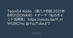 Team54 Radio (第八十四回:2021年8月31日ONAIR)*テーマ「私のポイント活用術」 https://youtu.be/9_HWU3lC1nc @YouTubeより
