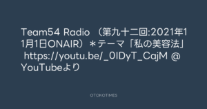 Team54 Radio (第九十二回:2021年11月1日ONAIR)*テーマ「私の美容法」 https://youtu.be/_0IDyT_CajM @YouTubeより