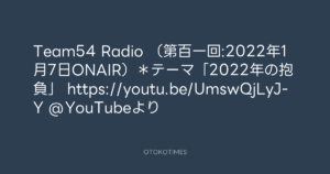 Team54 Radio (第百一回:2022年1月7日ONAIR)*テーマ「2022年の抱負」 https://youtu.be/UmswQjLyJ-Y @YouTubeより