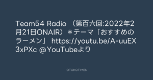 Koyo Maeda @koyomaeda – 19:05・2022年2月21日 2022 2/21 前田耕陽 2022-02-21 Team54 Radio (第百六回:2022年2月21日ONAIR)*テーマ「おすすめのラーメン」 https://youtu.be/A-uuEX3xPXc @YouTubeより Source:https://x.com/koyomaeda/status/1495701159361015812 text X Post 前田耕陽 前田耕陽 この記事が気に入ったら フォローしてね! Follow @OtokoTimes1988 よかったらシェアしてね! URLをコピーしました! 青山英樹 @aoyama_hideki - 14:47・2022年2月21日 🎬 Addict of The Tripminds @Atripminds2021 - 21:48・2022年2月21日 関連記事 Artist 前田耕陽 1968.08.16