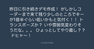 がしかしコーダーまで来て残り少しのところでキーが1音半ぐらい低いかもと気付く!!