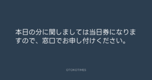 本日の分に関しましては当日券になりますので、窓口でお申し付けください。