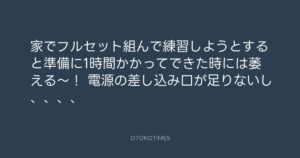 家でフルセット組んで練習しようとすると準備に1時間かかってできた時には萎える〜!