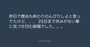 25日まで休みがない事に気づき凹む耕陽でした。。。