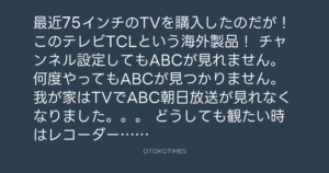 チャンネル設定してもABCが見れません。