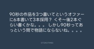Koyo Maeda @koyomaeda – 18:40・2024年7月2日 2024 7/02 前田耕陽 2024-07-02 90秒の作品を3つ書いてというオファーに6本書いて3本採用? くそ〜後2本ぐらい書くかな。。。 しかし90秒ってあっという間で物語にならないね。。。。 Source:https://x.com/koyomaeda/status/1808073152930762845 text X Post 前田耕陽 前田耕陽 この記事が気に入ったら フォローしてね! Follow @OtokoTimes1988 よかったらシェアしてね! URLをコピーしました! Rockon Social Club @rockonsocialclu - 18:00・2024年7月2日 Koyo Maeda @koyomaeda - 19:01・2024年7月2日 関連記事 Artist 前田耕陽 1968.08.16