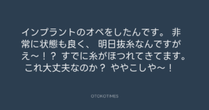 Koyo Maeda @koyomaeda – 23:42・2024年7月8日 2024 7/08 前田耕陽 2024-07-08 インプラントのオペをしたんです。 非常に状態も良く、 明日抜糸なんですが え〜!? すでに糸がほつれてきてます。 これ大丈夫なのか? ややこしや〜! Source:https://x.com/koyomaeda/status/1810323634034213088 text X Post 前田耕陽 前田耕陽 この記事が気に入ったら フォローしてね! Follow @OtokoTimes1988 よかったらシェアしてね! URLをコピーしました! 青山英樹 @aoyama_hideki - 23:24・2024年7月8日 🎬 Volodymyr Zelenskyy / Володимир Зеленський @ZelenskyyUa - 5:06・2024年7月9日 関連記事 Artist 前田耕陽 1968.08.16