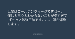 Koyo Maeda @koyomaeda – 16:17・2025年4月27日 2025 4/27 前田耕陽 2025-04-27 世間はゴールデンウィークですねー。 僕はと言うとわからないことが多すぎて ず〜っと勉強三昧です。。。 頭が爆発します。 Source:https://x.com/koyomaeda/status/1916391164938453351 text X Post 前田耕陽 前田耕陽 この記事が気に入ったら フォローしてね! Follow @OtokoTimes1988 よかったらシェアしてね! URLをコピーしました! 寺岡呼人 @yohito_teraoka - 15:21・2025年4月27日 OTOKOTIMES @OtokoTimes1988 - 18:43・2025年4月27日 関連記事 Artist 前田耕陽 1968.08.16