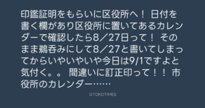 日付を書く欄があり区役所に置いてあるカレンダーで確認したら8/27日って!