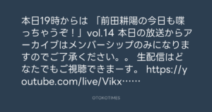 本日の放送からアーカイブはメンバーシップのみになりますのでご了承ください。。