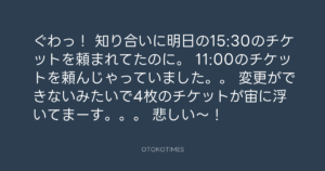 Koyo Maeda @koyomaeda – 10:37・2025年10月3日 2025 10/03 前田耕陽 2025-10-03 ぐわっ! 知り合いに明日の15:30のチケットを頼まれてたのに。 11:00のチケットを頼んじゃっていました。。 変更ができないみたいで4枚のチケットが宙に浮いてまーす。。。 悲しい〜! Source:https://x.com/koyomaeda/status/1973925350297231376 text X Post 前田耕陽 前田耕陽 この記事が気に入ったら フォローしてね! Follow @OtokoTimes1988 よかったらシェアしてね! URLをコピーしました! OTOKOTIMES @OtokoTimes1988 - 8:59・2025年10月3日 Rockon Social Club @rockonsocialclu - 17:00・2025年10月3日 関連記事 Artist 前田耕陽 1968.08.16