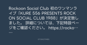 Rockoon Social Club 初のワンマンライブ「KURE 556 PRESENTS ROCKON SOCIAL CLUB 1988」が決定致しました。
