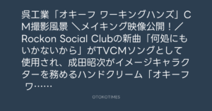 Rockon Social Clubの新曲「何処にもいかないから」がTVCMソングとして使用され、成田昭次がイメージキャラクターを務めるハンドクリーム「オキーフ ワーキングハンズ」テレビCMのメイキング映像公開!!🤲