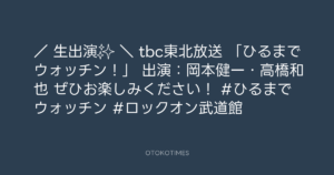 Rockon Social Club @rockonsocialclu – 10:58・2024年9月4日 2024 9/04 Rockon Social Club 2024-09-04 / 📢生出演✨ \ tbc東北放送 「ひるまでウォッチン!」 出演:岡本健一・高橋和也 ぜひお楽しみください! #ひるまでウォッチン #ロックオン武道館 Source:https://x.com/rockonsocialclu/status/1831149928... Rockon Social Club text X Post Rockon Social Club この記事が気に入ったら フォローしてね! Follow @OtokoTimes1988 よかったらシェアしてね! URLをコピーしました! Rockon Social Club @rockonsocialclu - 10:00・2024年9月4日 Rockon Social Club @rockonsocialclu - 11:03・2024年9月4日 関連記事 Artist Rockon Social Club 2023.02.17