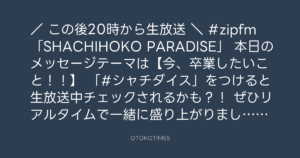 #zipfm 「SHACHIHOKO PARADISE」