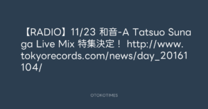 東京レコード @tokyo_records – 12:57・2016年11月22日 2016 11/22 2016-11-22 【RADIO】11/23 和音-A Tatsuo Sunaga Live Mix 特集決定! http://www.tokyorecords.com/news/day_20161104/ Source:https://x.com/tokyo_records/status/800911032323... text X Post この記事が気に入ったら フォローしてね! Follow @OtokoTimes1988 よかったらシェアしてね! URLをコピーしました! Koyo Maeda @koyomaeda - 10:59・2016年11月21日 Koyo Maeda @koyomaeda - 23:17・2016年11月22日