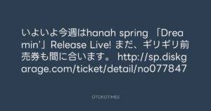 いよいよ今週はhanah spring 「Dreamin’」Release Live!