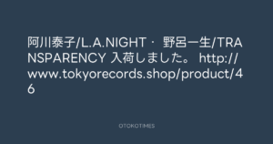 東京レコード @tokyo_records – 12:31・2018年3月30日 2018 3/30 2018-03-30 阿川泰子/L.A.NIGHT・ 野呂一生/TRANSPARENCY 入荷しました。 http://www.tokyorecords.shop/product/46 Source:https://x.com/tokyo_records/status/979561758103... text X Post この記事が気に入ったら フォローしてね! Follow @OtokoTimes1988 よかったらシェアしてね! URLをコピーしました! 寺岡 呼人 @yohitoteraoka - 09:28・2018年3月30日(IG post) 青山英樹 @aoyama_hideki - 15:47・2018年3月30日