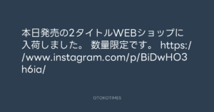 東京レコード @tokyo_records – 12:21・2018年4月27日 2018 4/27 2018-04-27 本日発売の2タイトルWEBショップに入荷しました。 数量限定です。 https://www.instagram.com/p/BiDwHO3h6ia/ Source:https://x.com/tokyo_records/status/989706160268... text X Post この記事が気に入ったら フォローしてね! Follow @OtokoTimes1988 よかったらシェアしてね! URLをコピーしました! 東京レコード @tokyo_records - 18:04・2018年4月26日 東京レコード @tokyo_records - 17:09・2018年4月27日
