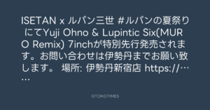 ISETAN x ルパン三世 #ルパンの夏祭り にてYuji Ohno & Lupintic Six(MURO Remix) 7inchが特別先行発売されます。お問い合わせは伊勢丹までお願い致します。 場所: 伊勢丹新宿店 https://www.instagram.com/p/BlKyByIhvBZ/?utm_source=ig_twitter_share&igshid=o3hiw9aha4e