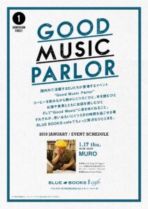 本日、MUROがBLUE BOOKS cafe JIYUGAOKAのGood Music Parlor に出演します。お近くの方は是非、いらっしゃって下さい。