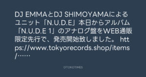 DJ EMMAとDJ SHIMOYAMAによるユニット「N.U.D.E」本日からアルバム「N.U.D.E 1」のアナログ盤をWEB通販限定先行で、発売開始致しました。