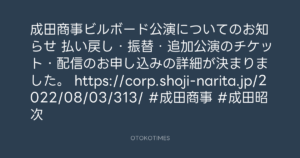 成田商事ビルボード公演についてのお知らせ