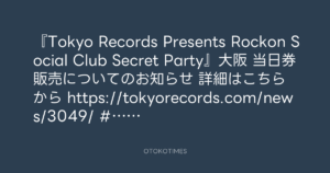 『Tokyo Records Presents Rockon Social Club Secret Party』大阪 当日券販売についてのお知らせ