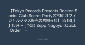 【Tokyo Records Presents Rockon Social Club Secret Party名古屋 オフィシャルグッズ販売のお知らせ】