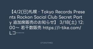 【4/2(日)札幌・Tokyo Records Presents Rockon Social Club Secret Party 追加席販売のお知らせ】