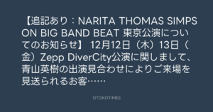 【追記あり:NARITA THOMAS SIMPSON BIG BAND BEAT 東京公演についてのお知らせ】